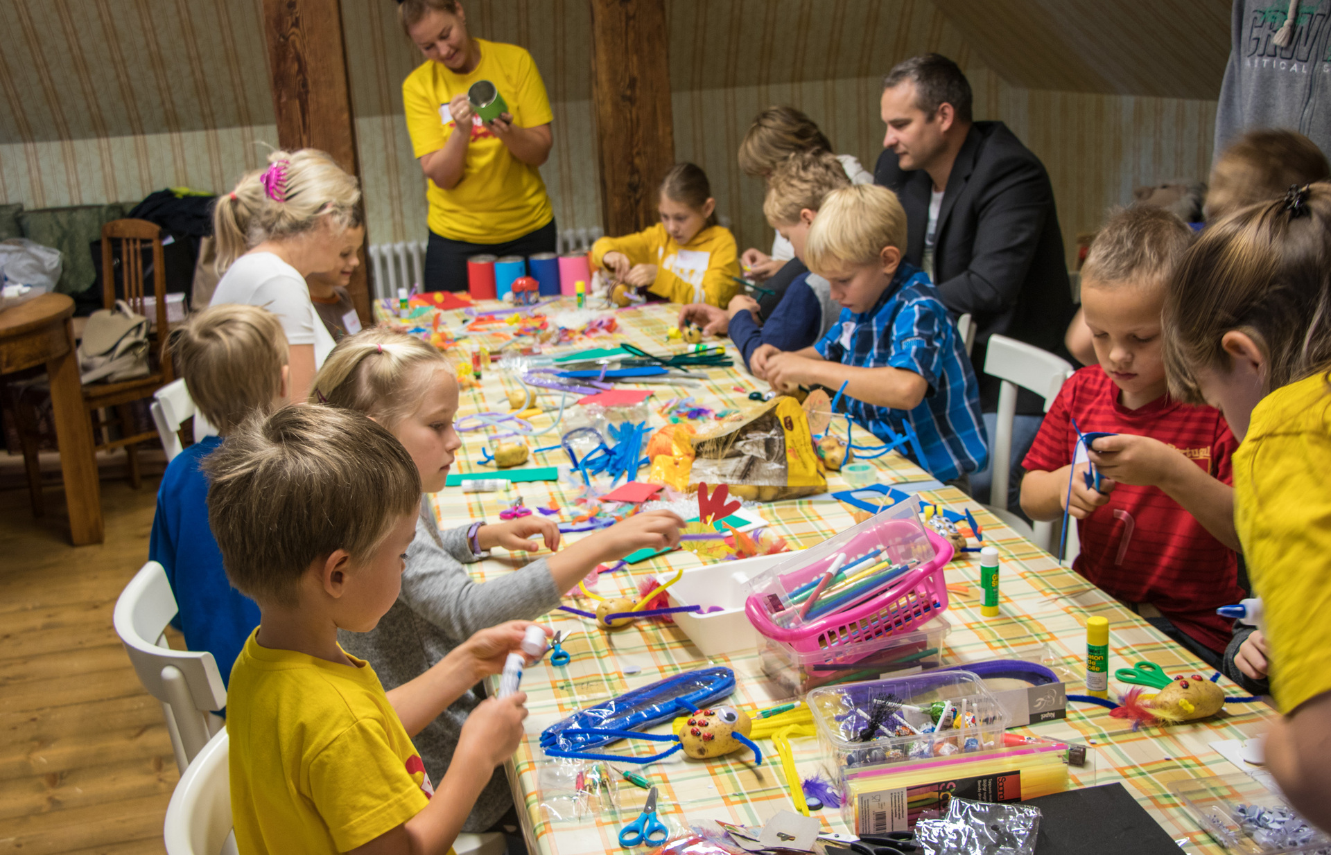 Pilla-palla kiriku raames on lapsed jagatud kolme vanuserühma: 0–4-aastased, 5–9-aastased ja 10–14-aastased. Päeva teemal on lastele üks lugu ja sellega seotud meisterdamine. Kõige väiksemad tegid seekord binokleid, keskmine vanuserühm kartulitrükki ja kõige vanemad käepaela. Teemaga oli seotud keskkonnateemaline lühilugu maailma loomisest, uuriti, kuidas loomine näitab, et meid on loodud siia maailma vastutama ja valitsema.