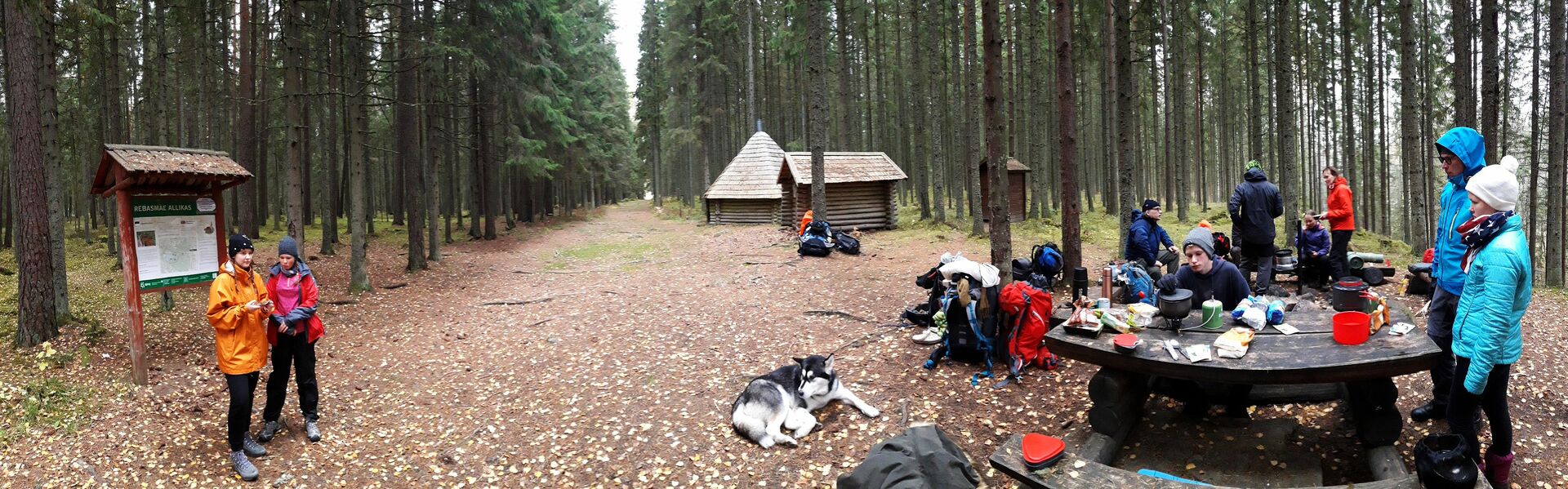 Võru bussijaamas jagasime toiduained kõigi matkaliste kottidesse ja istusime järgmisele bussile, millega sõitsime oma esimese ööbimispaiga poole. Lisaks meile, koer Yukole ja suurtele matkakottidele mahtusid väiksesse bussi veel mõned üksikud kohalikud. Väljusime Panga bussipeatuses, kust algas keset õhtust pimedust meie esimene 7-kilomeetrine matkamine Liipsaare metsaonni.