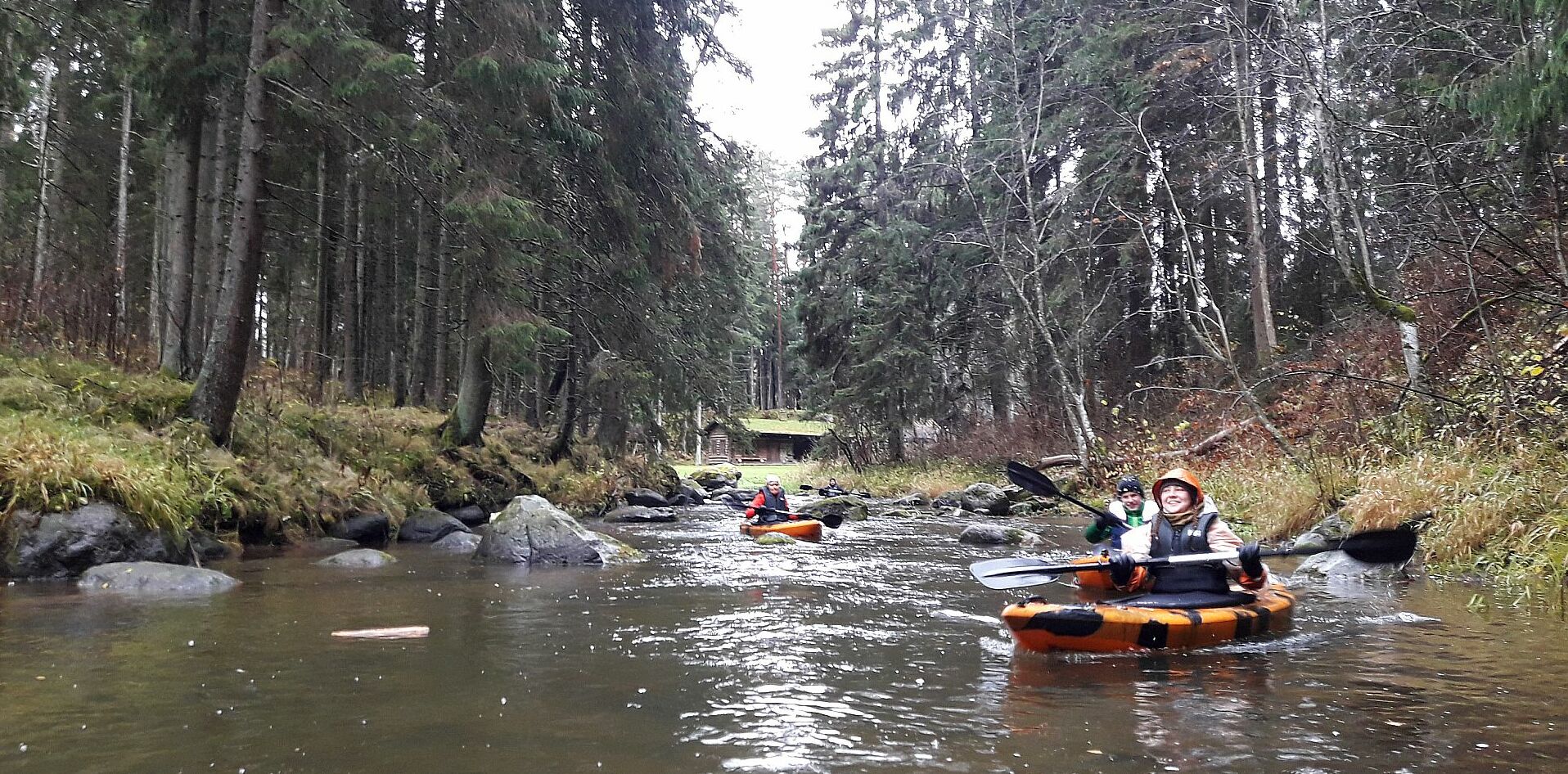 Järgmisel päeval ootas meid ees unustamatu süstasõit mööda Piusa jõge. Unustamatu oli see tõesti! Lisaks tihedale vihmale jäime pidevalt kivide vahele kinni või peatasid meid risti üle jõe kukkunud suured puud. Kui me järjekordselt ühe langenud palgi taha seisma jäime, sai meil villand ja me ronisime läbimärgadena ning külmununa süstadest välja. Õnneks viidi meid sealt autoga Piusa Veere tallu, kus saime soojad ja kuivad riided selga. Päeva lõpetasime mõnusa suitsusaunaga.