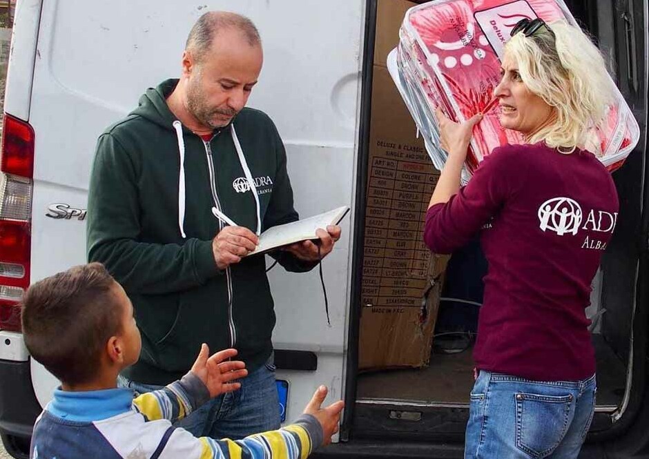 ADRA jagav inimestele madratseid, tekke, toitu ja puhast vett. Altin rõhutas, et väga oluline on anda inimestele telke, eriti roma kogukonnas. „Nad ei saa Albaanias valitsuselt ega teistelt institutsioonidelt abi, vaid ADRAlt. Meie meeskond töötab selle nimel, et ehitada neile väike laager.“