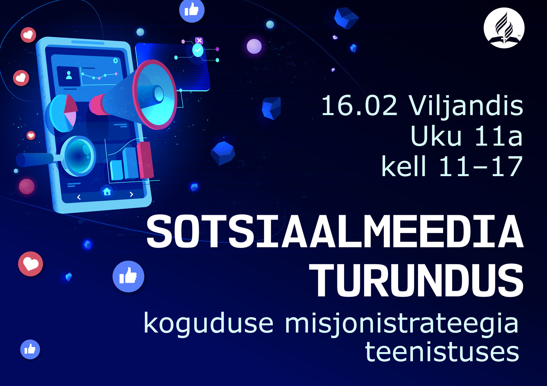 Koolituspäev algab 16. veebruaril kell 11 Viljandi adventkirikus Uku 11a. Koolituspäev on tasuta, kuid kuna päeval on ka toitlustamine, siis soovitakse registreerumist.