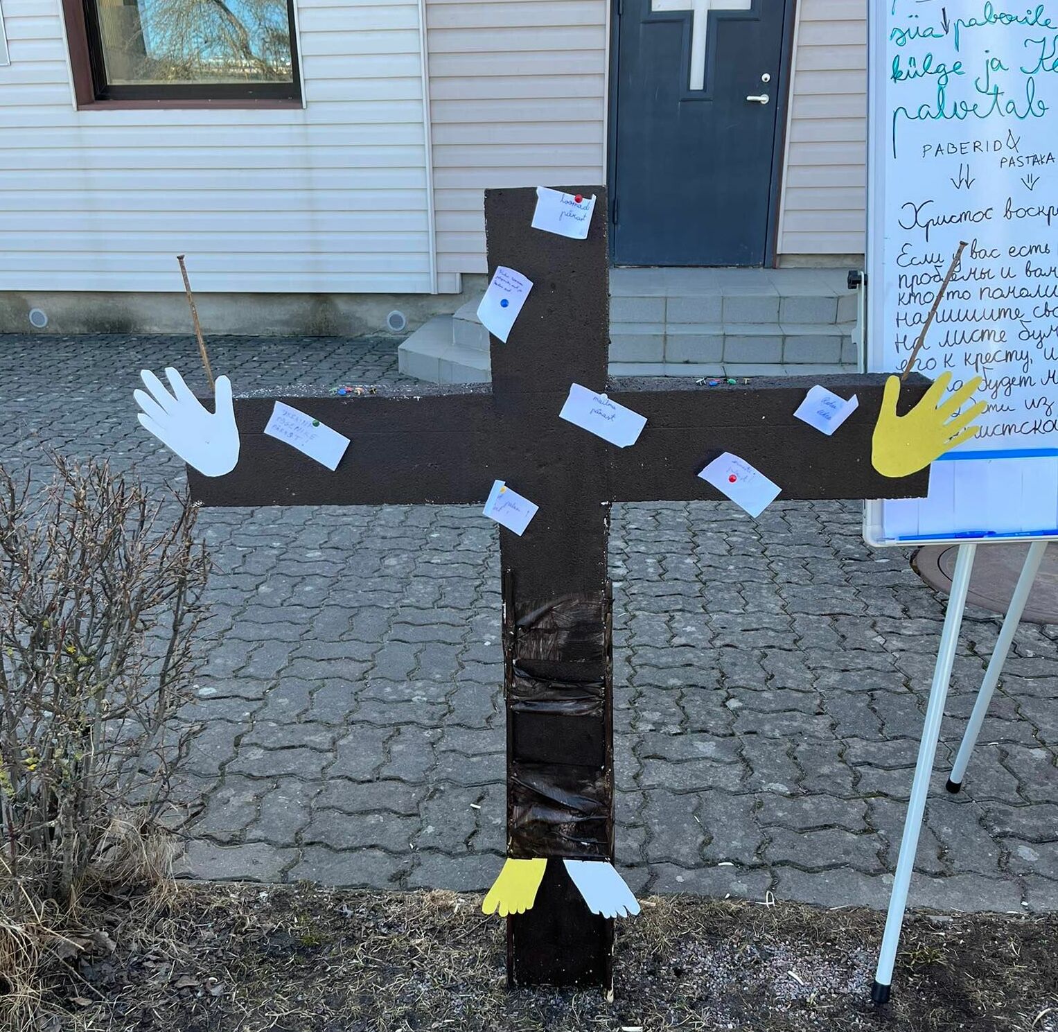 Vaiksel laupäeval meisterdasid Keila koguduse lapsed risti, millele kinnitati tekst üleskutsega kinnitada risti külge eestpalvesoove.