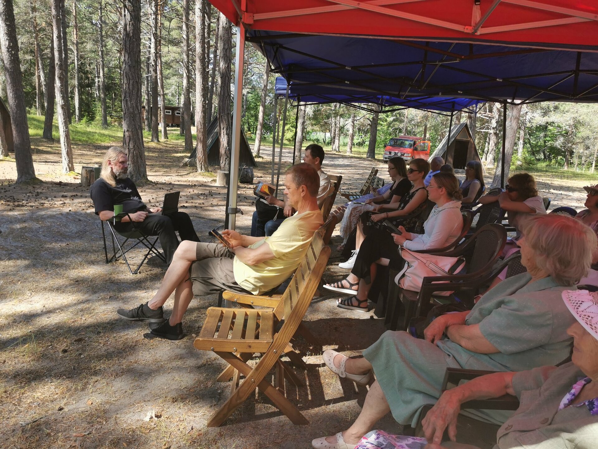 Pärast jumalateenistust ja ühist lõunasööki suundus enamik laagrisse tulnuid mere äärde. Kuigi vesi oli nii sooja ilma kohta üpris külm, läks üsna mitu julgemat ujuma. Teised tegid aega parajaks päevitades ja sõprade-tuttavatega suheldes. Õhtu poole jätkus jutuajamine vestlusringis, kus osalejad võisid esitada Mervile küsimusi tema elu ja tegemiste kohta. Mervi rääkis nii oma peatsest abiellumisest ja Rootsi kolimisest kui ka doktoritööst, mille kirjutamisega ta peaaegu lõpusirgele on jõudnud. Kuna doktoritöö teemaks on jutlustamine, said kuulajad teada palju huvitavat selle kohta, kuidas on jutluste pidamise stiil aja jooksul muutunud, millistel teemadel soovivad inimesed jutlusi kuulda ja mida peab meeles pidama postmodernistlikus ühiskonnas elavatele inimestele kõneldes.