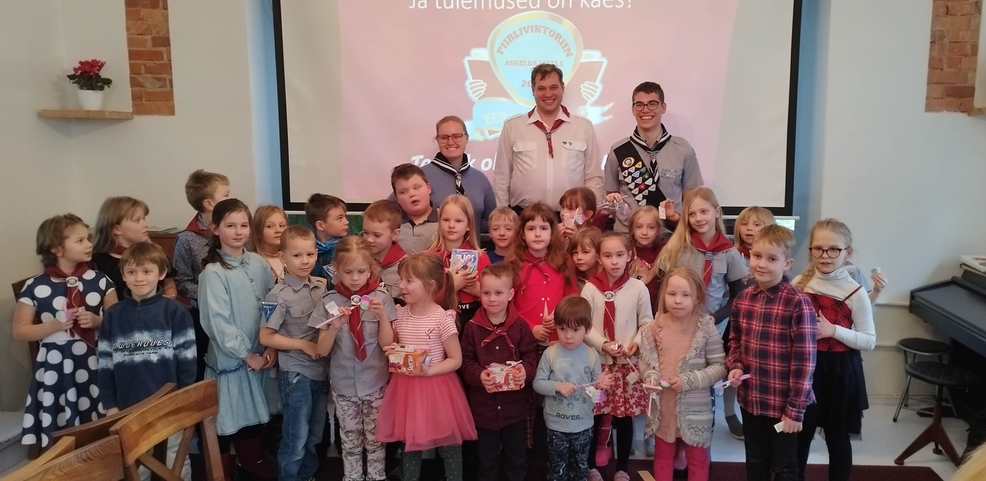 Viktoriin algas hingamispäeval kell 14, kuid juba hommikuse jumalateenistuse ajal oli kirikusaal lapsi täis ja sellest tulenevalt oli jumalateenistus seekord rohkem askeldajatele suunatud. Samateemalisel viktoriinil saavad osaleda kõik huvilised pühapäeval, 26. veebruaril, kui Viljandi kogudus tähistab 115. aastapäeva võrkpallimängu ja piibliviktoriiniga. Nüüd polegi muud kui Johannese evangeeliumi lugema, erilise tähelepanuga peatükkidele 1–8.