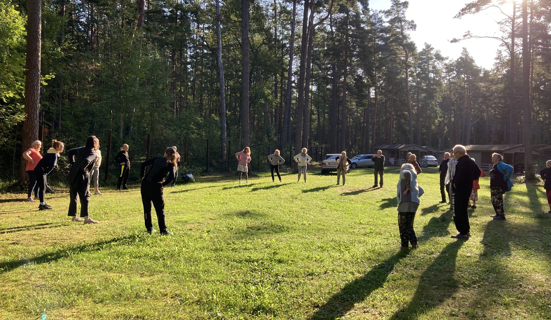 Laagri teine päev 8. augustil algas hommikuvõimlemisega saunaterrassil Heli Tammemägi juhendamisel. Ilmaolusid (külm ja tormine) arvestades läks aktiivne liigutamine asja ette. Kõik said hakkama lihtsate, soojendavate ja venitavate võimlemisharjutustega.