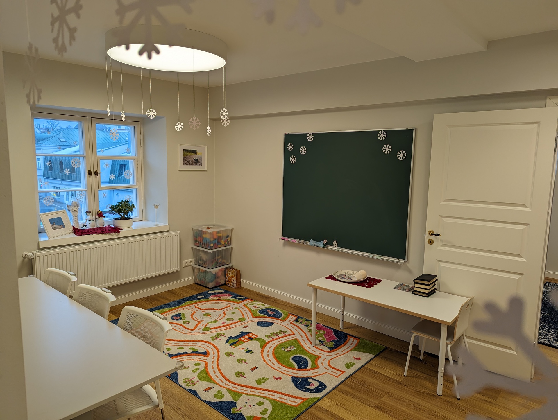 Olavi väljendas suurt heameelt sisekujundaja lahenduste üle nii lastetöö ruumides kui ka külaliskorteris. „Mööblit valides mõtlesime sellele, et neid ruume saaks kasutada võimalikult multifunktsionaalselt. Lauad on ratastega ja neid saab panna üksteise sisse, seintel on tahvlid ja kapid ning riidehoiukohad on kõik tehtud lastele mõeldes. Mööbel on tellitud mõõtude järgi ja vastavalt meie soovidele.“