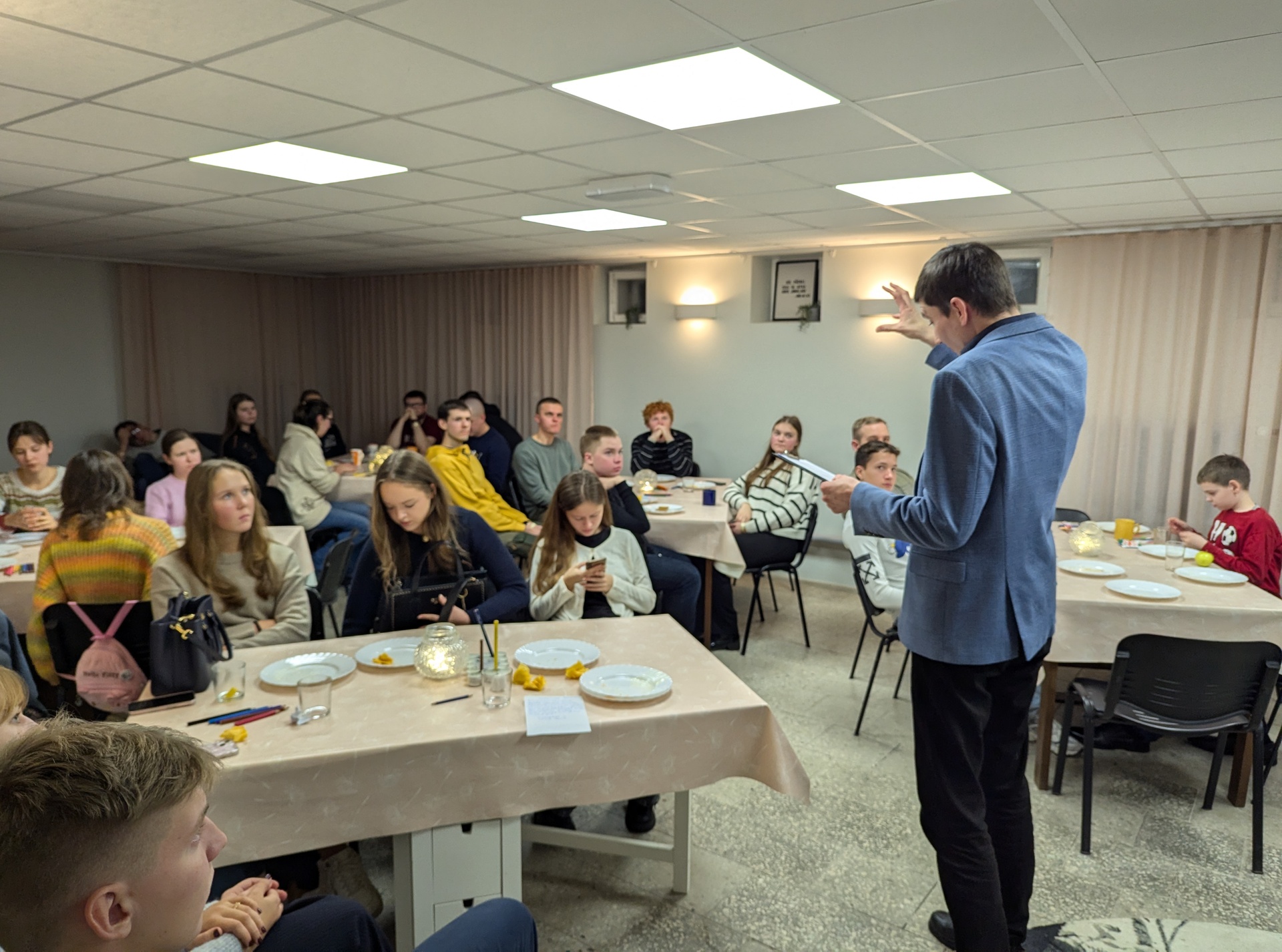 Pärastlõunal oli noortel võimalus osaleda nii teematubades kui minna linna kingitusi jagama. Pastor Mārtiņš jagas mõtteid, kuidas isiklikku pühendusaega toimivaks muuta.