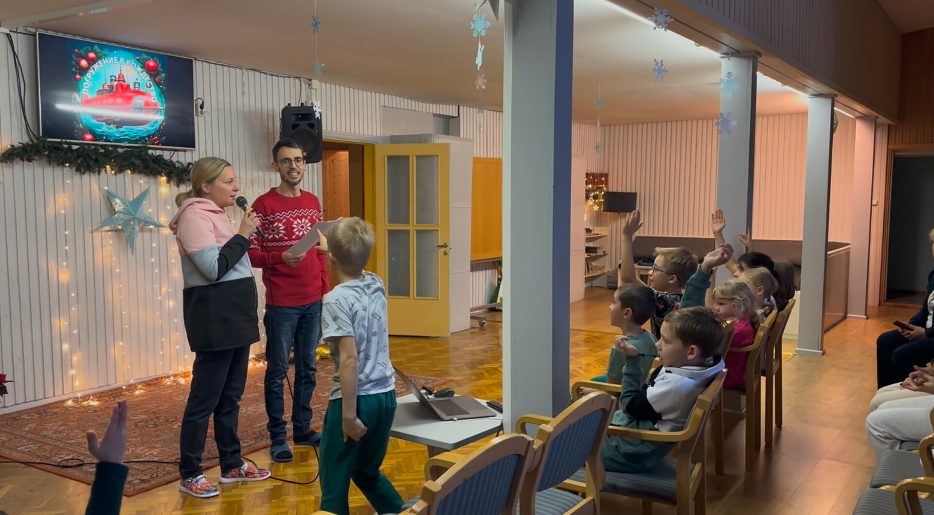 Tänavuse jõululaagri programmi juhid olid Julia ja Ruslan Karlov. Programmi suur plaan oli Julia sõnul see, et kujutati ette, et ollakse allveelaevas ja iga päev sukelduti erineva jõuluteema juurde. „Avastasime igal hommikul ja õhtul midagi, mis on seotud jõuluteemaga. Iga asjaga tahtsime jõuda sinna, et kui hiljem neid asju kuskil näeme, siis võime mõelda sellele, mida need Jumala kohta ütlevad,“ rääkis Julia. Esimene asi, mille juurde sukelduti, olid valgusketid, millega ehitakse jõulukuuske ja kodu. „Jumal on valgus ja Ta kutsub, et meie oleksime ka valgus teistele,“ ütles Julia. „Teine oli jõulukellukesed - need pakuvad meile rõõmu ja me rääkisime, et meil võivad olla erinevad tunded – me võime olla kurvad ja pettunud, aga kui meie südames elab Jeesus, siis on meie südames alati ka rõõm vaatamata kõigile neile sündmustele, mis meil elus ette tulevad. Ja Jeesus kutsub, et me oleksime rõõmuks teistele, suunaksime teisi rõõmu juurde.“ Sealt edasi uuriti punase-valgetriibulist jõulukommi, mille värvid sümboliseerisid puhtust ja Jeesuse verd. Veel uuriti jõulutähte, mis näitab teed, ja kingitusi. „Rääkisime, kas meile meeldib kingitusi saada ja neid teistele teha. Miks me kingime oma lähedastele kingitusi – et armastame neid, ja samamoodi tegi Jeesus meile kõige suurema kingituse.“