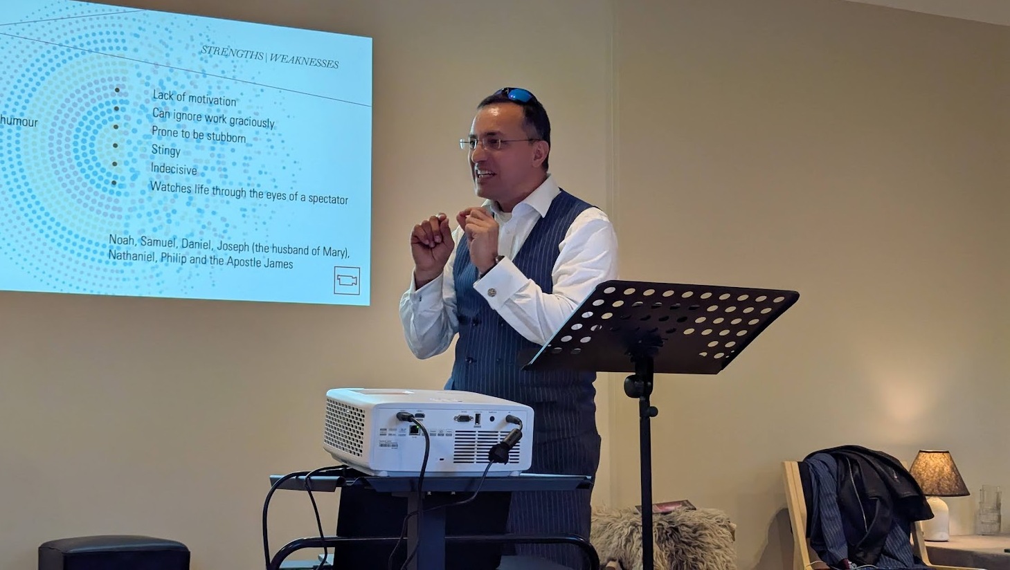 Piiblikooli nelja sessiooni vältel rääkis Marcel neljast erineva isiksusetüübiga piiblitegelasest: Peetrusest, Moosesest, Paulusest ja Aabrahamist. Marcel märkis, et on oluline, et suudaksime piiblitegelastega samastuda ja mõista, et ka nemad olid inimesed – siis muutub Piiblis kirjapandu meile mõistetavamaks ja lähemaks. Marcel tõi iga tegelase kohta välja tema positiivsed ja negatiivsed iseloomujooned ning rääkis, kuidas need Piiblisse kirja pandud lugude kaudu väljenduvad. Erilist rõhku pööras ta sellele, kuidas Jumal nende patust olemust muutis ja selle kaudu neid inimesi oma tööks kasutada sai. Iga sessiooni käigus julgustas Marcel noori leidma enda ja tegelaste vahel sarnasusi ja erinevusi, et mõista, et oleme kõik oma iseärasustega Jumalale armsad.