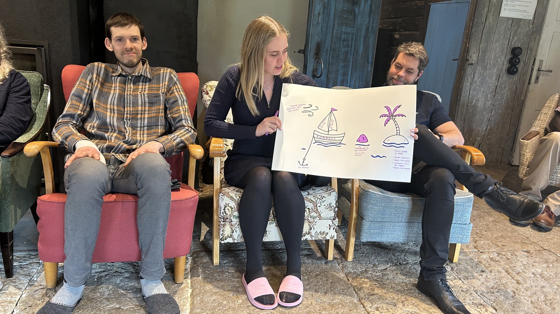 Pärast lõunat oli jalutuskäik, kus Aleksandr kasutas vestluse juhtimiseks sellist meetodit, et iga kolme minuti järel pidi igaüks vahetama vestluskaaslast. „Esitasin teema, millest kolm minutit rääkida ja siis oli vahetus. Peale seda tegime laevu,“ ütles Aleksandr ja kirjeldas rühmatööd järgmiselt: „Laev on kogudus või grupp või sina ise. Saar on koht, kuhu tahad jõuda. Igaüks ise ütleb, mis see koht on, kuhu tahetakse jõuda, olgu see rajatud kogudus või taevariik vms. Tuul on see, mis ei sõltu sinust, see on Püha Vaimu jõud, mis lükkab edasi. Ankur on see, mis hoiab kinni ja ei lase areneda.“ Iga rühm kirjeldas enda pilti teistele ja iseloomustas kõiki nimetatud asjaolusid.