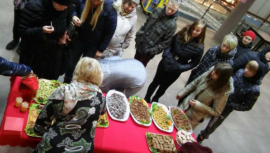 Taimsete jõulutoitude tutvustamiseks pandi Kroonikeskusesse üles degusteerimislaud, kus kõik soovijad võisid koguduseliikmete valmistatud hõrgutisi proovida. Inimesi kogunes laua ümber palju ning suur osa neist oli toite maitstes meeldivalt üllatunud ja soovis endalegi retsepte. Enim tõstsid külastajad esile oakotlette, soolast kohupiimavormi ja puuviljakomme. Osa retsepte oli ära toodud kalendris, mida võis tasuta kaasa võtta, ning samuti jagati tasuta selle aasta misjoniraamatut „Tervis ja heaolu“. Degusteerimislauda külastas umbes 180 inimest ja toite viidi maitsta ka Selveri müüjatele, kes ei saanud ise kohale tulla, sest pidid kassas viibima.