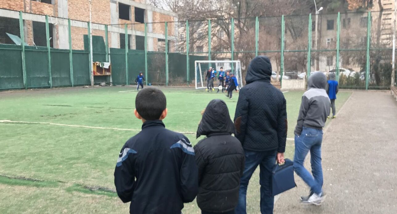 Ühtegi sinist kaarti neljapäeva hommikuses mängus ei näidatud. Poisid ajasid kindlameelselt taga valget palli, kui nad mängisid kerges vihmasajus metallist aiaga ümbritsetud väljakul. Nad naeratasid laialt iga kord kui Sanginov nende poole pöördus. Pooltosinat poissi vaatasid mängu ning Sanginov ütles, et ka vaatajatel on võimalus liituda tiimiga.