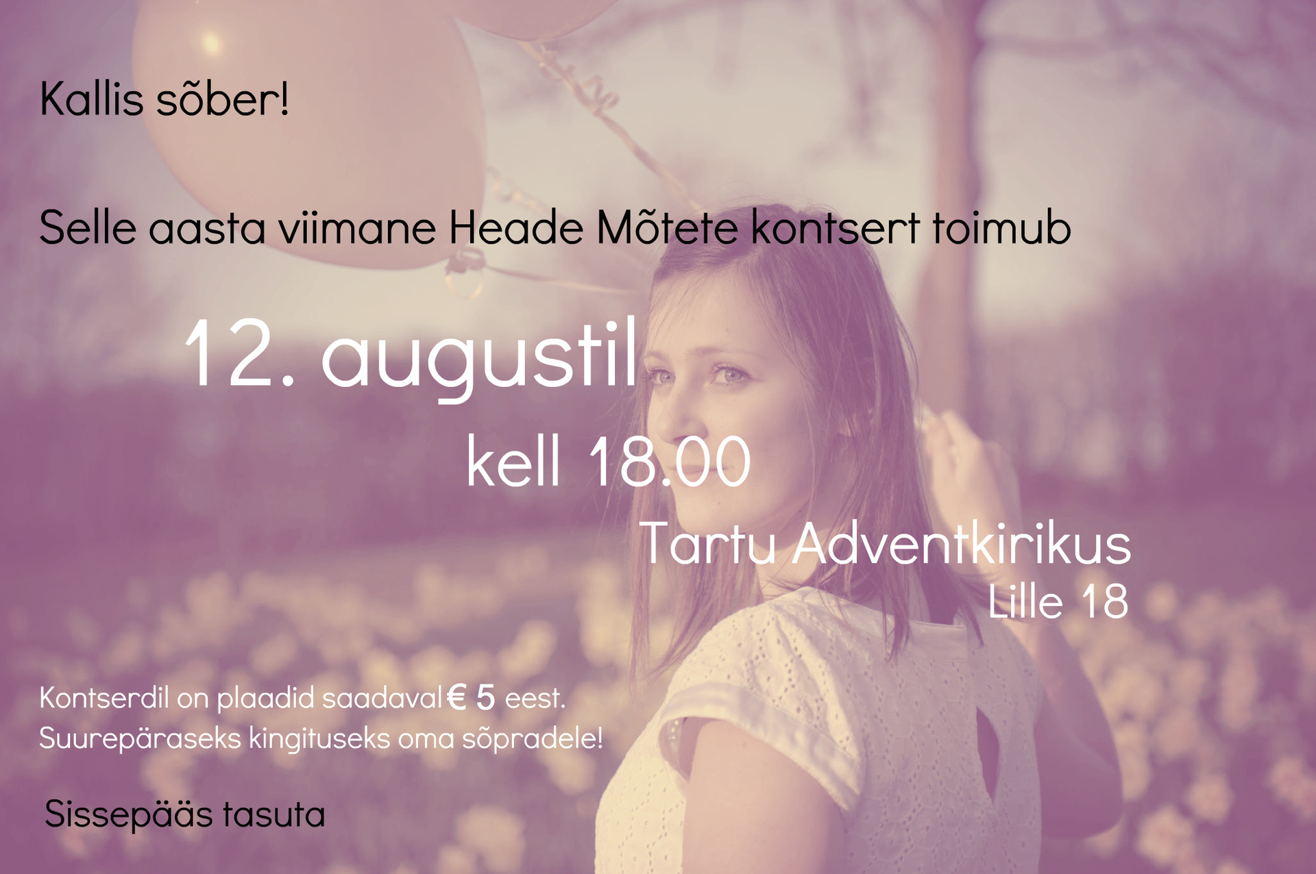 12. augustil kell 18:00 Tartu adventkirikus.